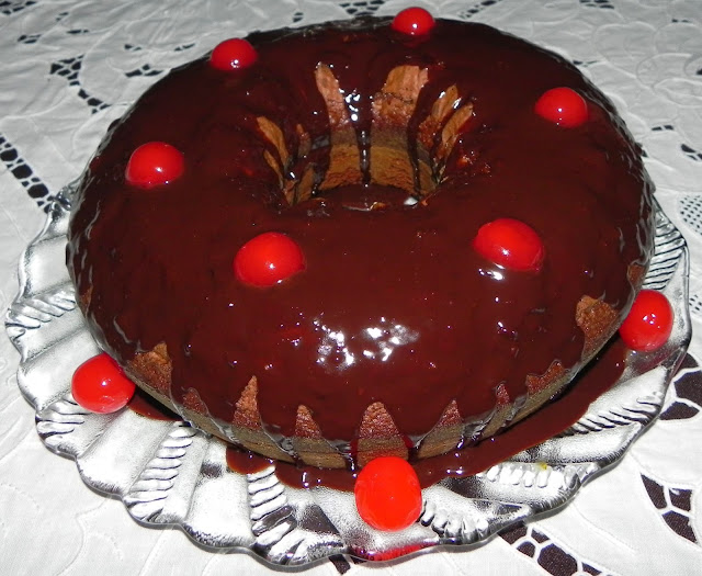 Desenforme o bolo para um prato de servir, se preferir, regue com molho de chocolate e decore a gosto. No entanto, este bolo é tão saboroso que pode ser servido sem o molho ou com outra cobertura a gosto.