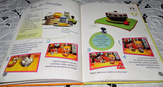 Assim que lhe disse que ia fazer um bolo, de imediato e com grande entusiasmo foi buscar um livro de culinária para crianças. Cá por casa existem vários, pois apesar de os meus rapazes nunca terem cozinhado sempre gostaram de adquirir este tipo de livros. Quem sai aos seus não degenera.... já dizia o ditado.